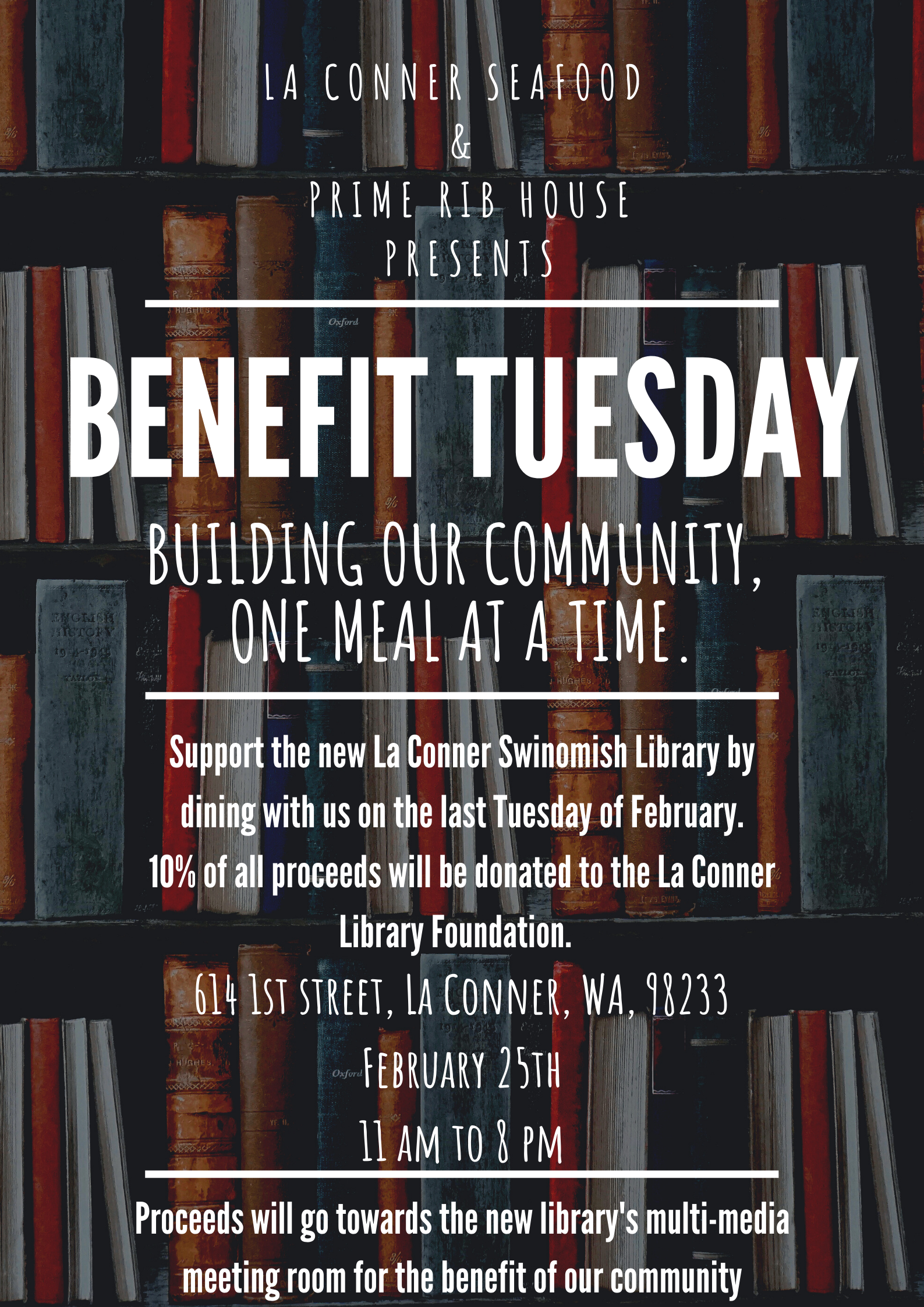 La Conner Seafood & Prime Rib House Presents Benefit Tuesday Supporting the La Conner Swinomish Library