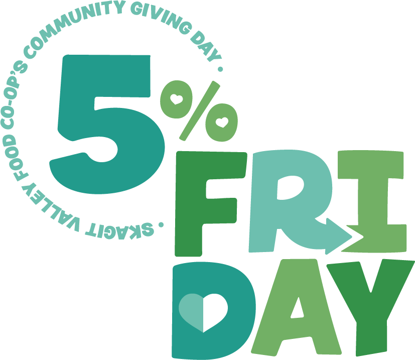 Each year, the Skagit Valley Food Co-op Board of Trustees opens applications for the Co-op's longstanding 5% Friday Community Giving Day Program: one Friday each month, the Co-op donates 5% of the day's sales to a local community group. In 2025, all-time giving surpassed $550,000!