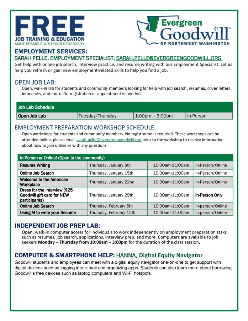 Evergreen Goodwill Free Job Training & Education