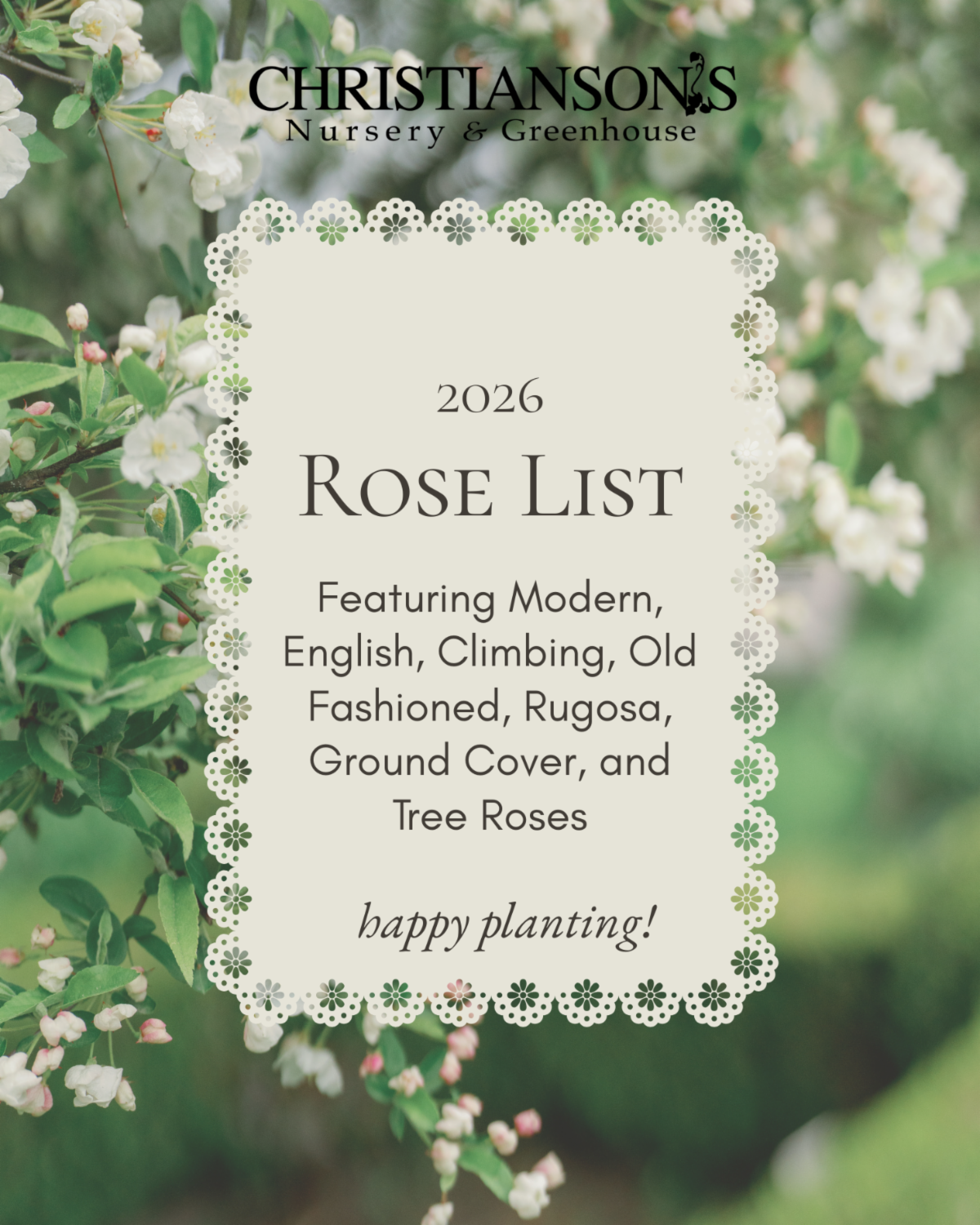 We carry over 500 varieties of new and returning roses with diversified groups of top-rated roses for our climate. The groups include Hybrid Teas, Grandifloras, Floribundas, Climbing, Groundcover, David Austin English Roses, Rugosa, and Old Garden Roses.